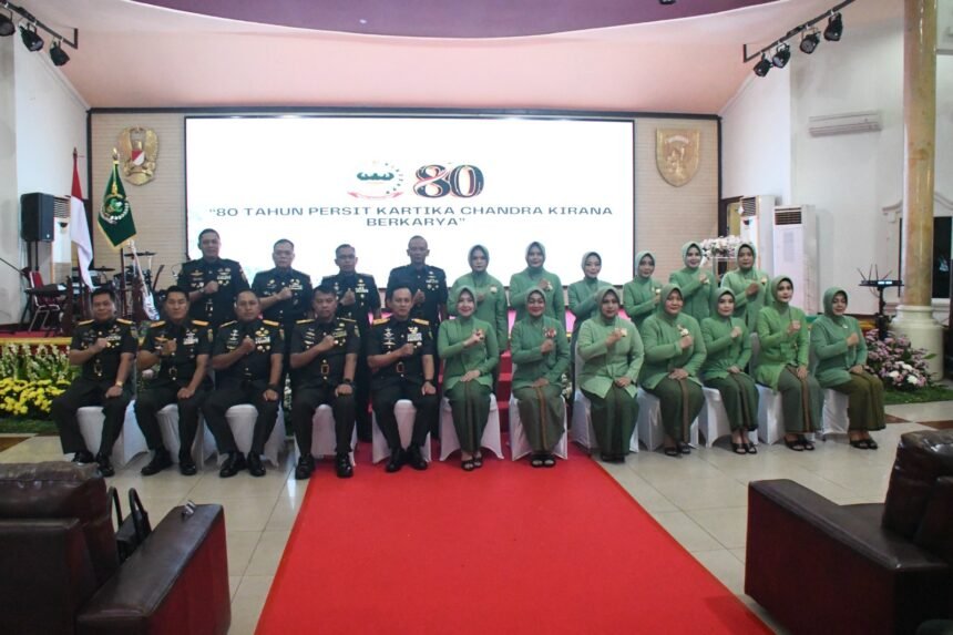 Kegiatan berlangsung khidmat dan penuh kebersamaan dengan mengusung tema “80 Tahun Persit Kartika Chandra Kirana Berkarya.” Acara ini menjadi momentum penting untuk mengenang perjalanan panjang serta pengabdian Persit dalam mendampingi prajurit TNI AD sekaligus berkontribusi bagi masyarakat.
