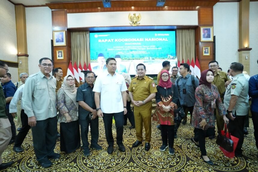 Jakarta, beritakitanew.com – Dalam upaya memperkuat langkah antisipatif menghadapi potensi kekeringan yang berdampak pada produktivitas sektor pertanian nasional, Bupati Banyuasin Dr. H. Askolani, S.H., M.H. bersama para kepala daerah se-Indonesia menghadiri Rapat Koordinasi Nasional (Rakornas) Mitigasi Kekeringan Lahan Pertanian Tahun 2026.
