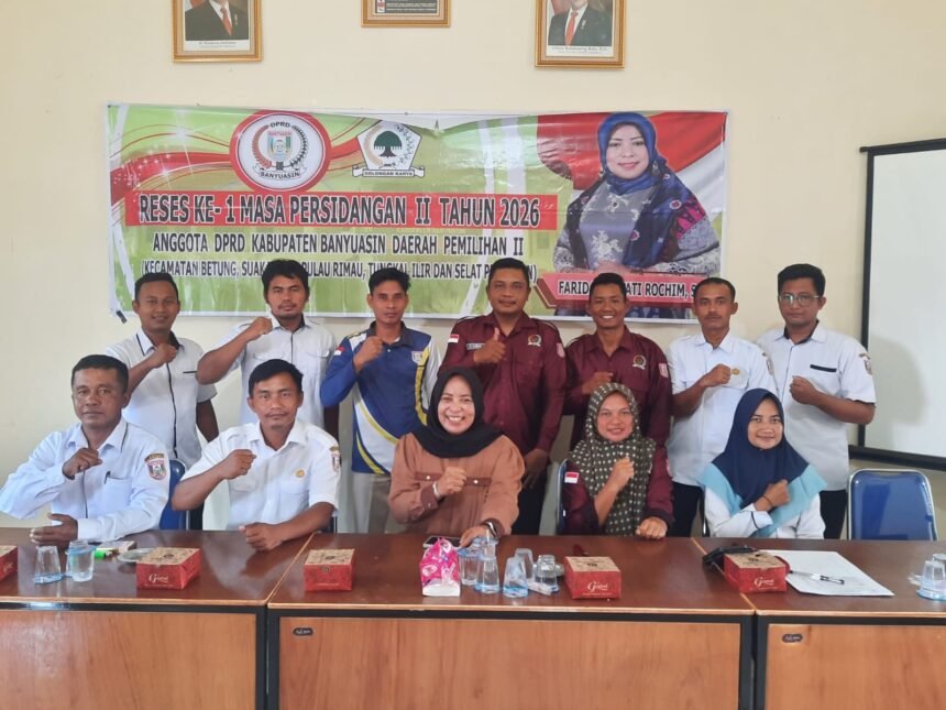 Banyuasin, beritakitanew.com – Anggota Dewan Perwakilan Rakyat Daerah (DPRD) Kabupaten Banyuasin dari Daerah Pemilihan (Dapil II) yang meliputi Kecamatan Tungkal Ilir, Betung,Suak Tapeh, Pulau Rimau dan Kecamatan Selat Penuguan. Menggelar Reses Ke 1, Masa Persidangan lI Tahun 2026 , dari tanggal 9-13 Februari 2026.
